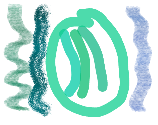 between strokes with zero compounding. Works perfectly at any opacity.